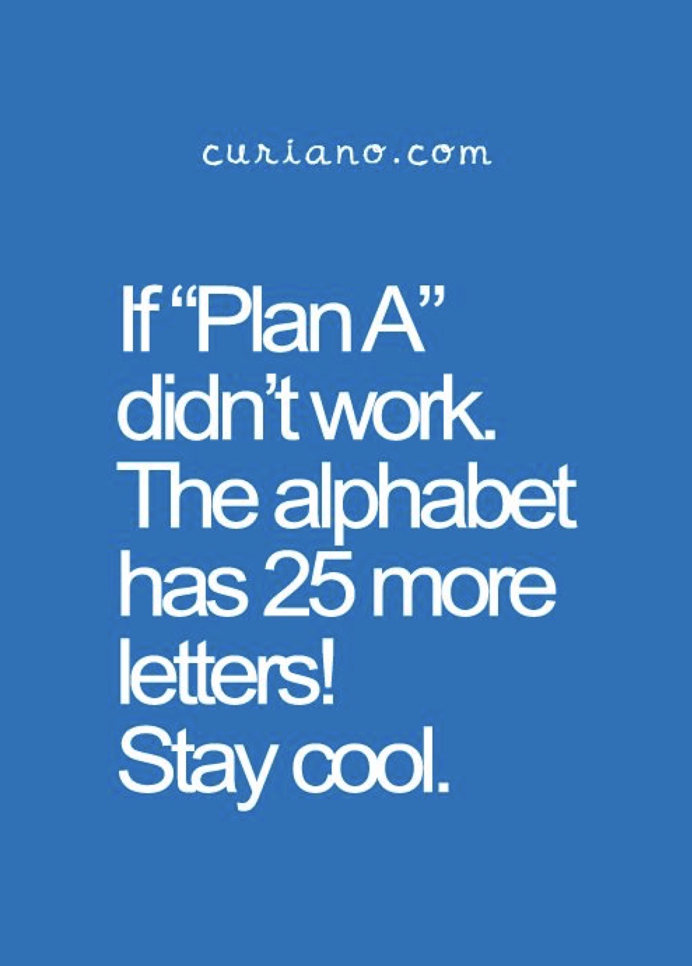 A great reminder to me that Plan B, C, and even D, will still be ok. Life is hard, but never think it can’t get worse, because then it will. I’m trying to be grateful for many blessings!!